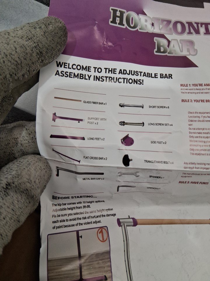 Expandable Height Gymnastics Horizontal Kip Bar - APPROX. 3FT to 5FT - Cyan/Blue