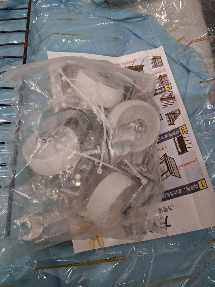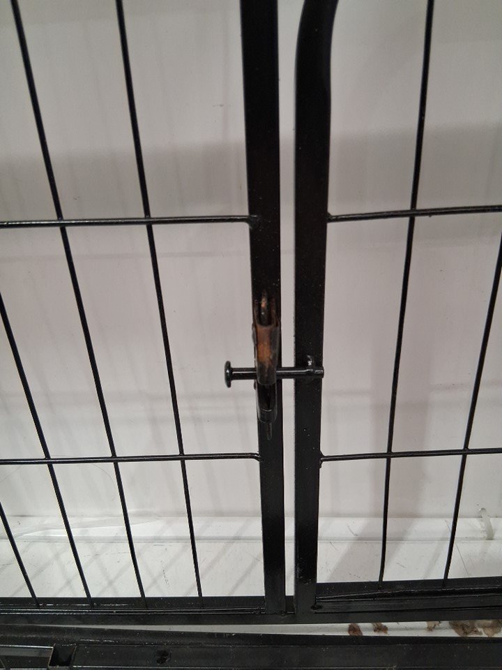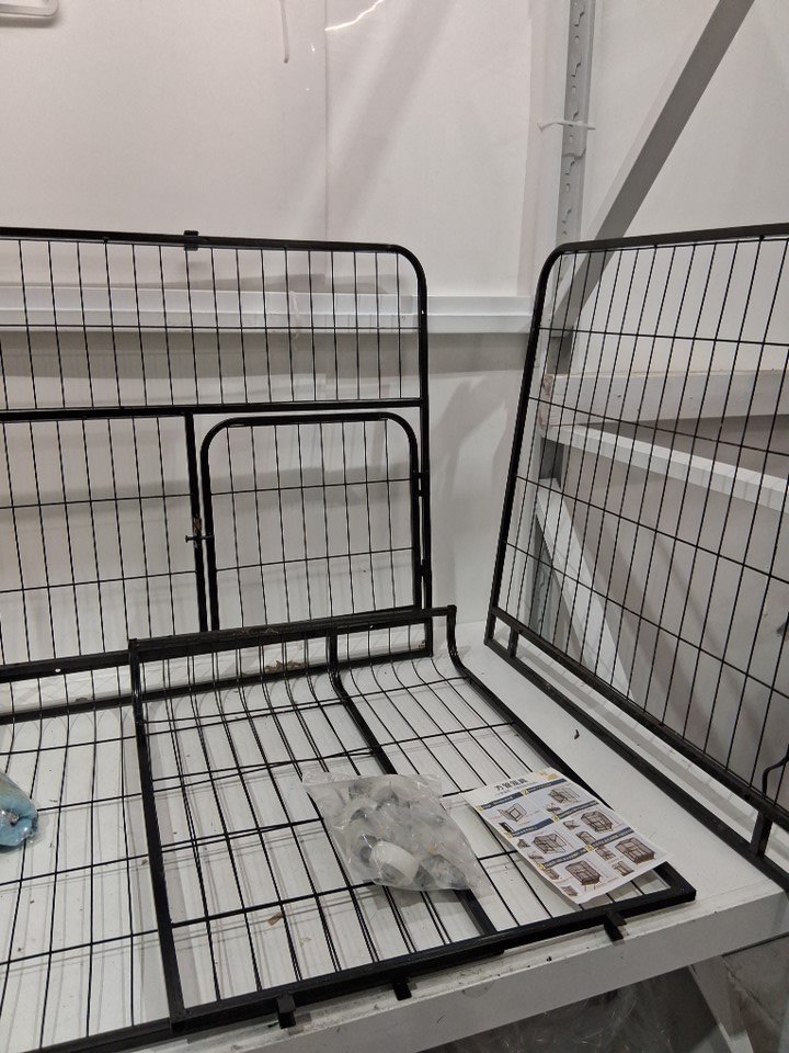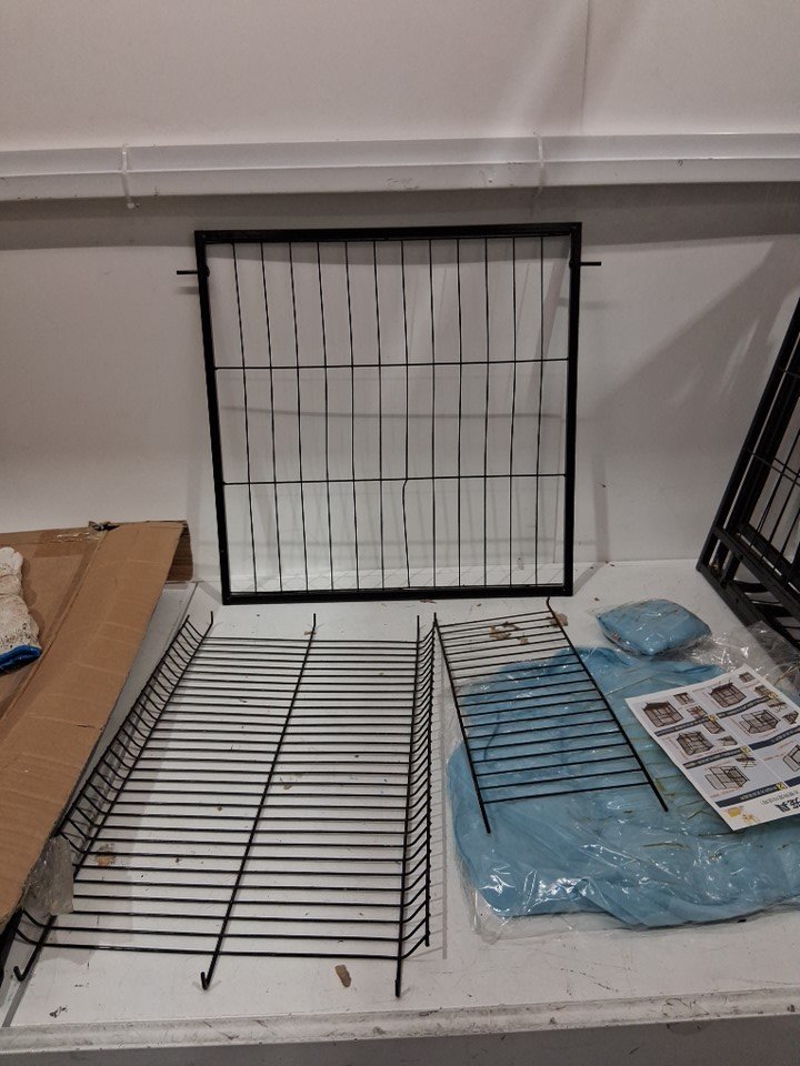 Appears unused. Due to large whole in box, cage was exposed and has some rust/discoloration on the bars/tray. Some of the smaller bars along the side are bent. War repackaged due to state of the box.