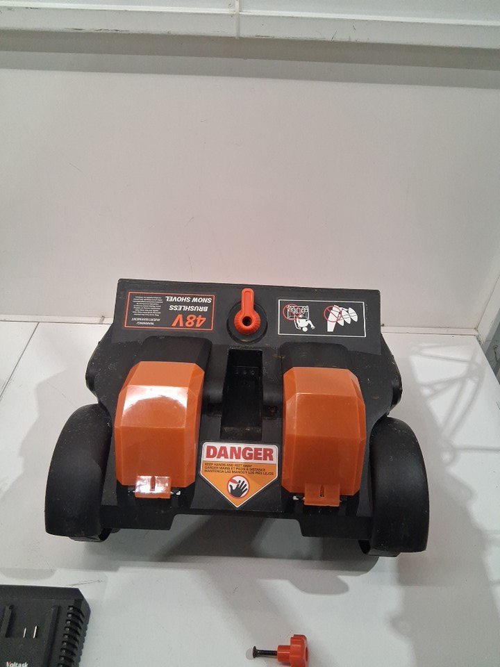 There are many scuff marks and a bit of debris on the product as well as blower machine is covered in water and marks and mud from outside use. product was tested for power