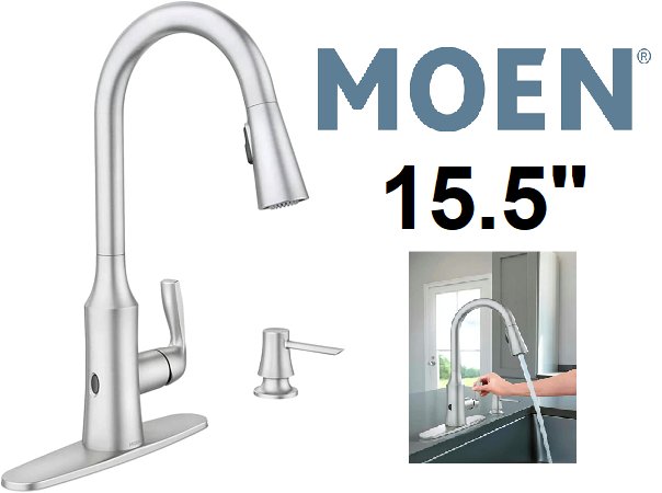 moen motionsense wave One-Handle High Arc Kitchen Faucet with soap dispenser and touchless activation - 15.75" x 7.9" - polished nickel