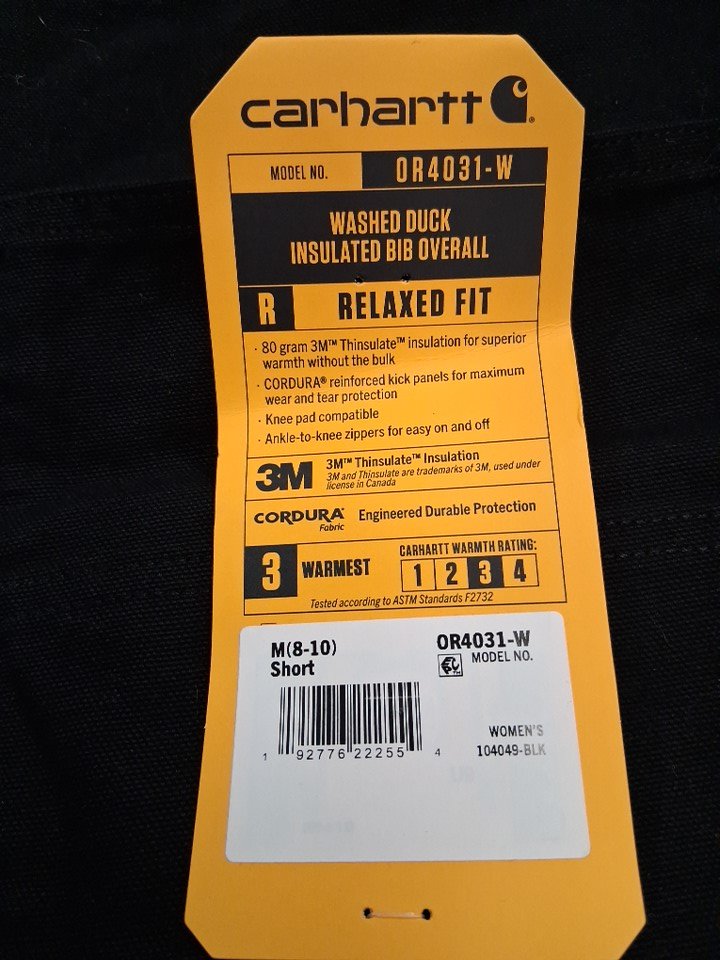 Women's Carhartt Relaxed Fit Washed Duck Insulated Bib Overalls - Medium (8-10) Short - BLACK (STYLE: OR4031-W)