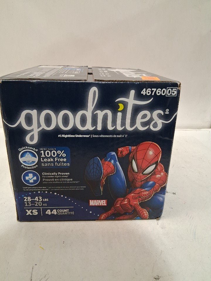 44PK GOODNITES NIGHT TIME BEDWETTING UNDERWEAR FOR BOYS - XS (28-43LBS) - MARVEL SPIDERMAN