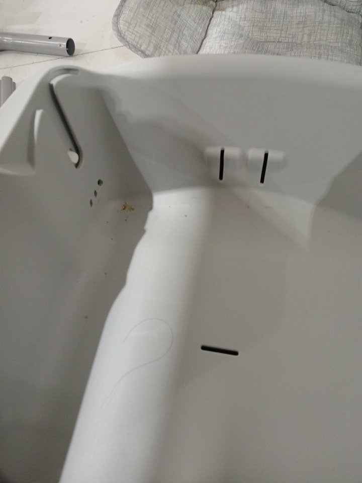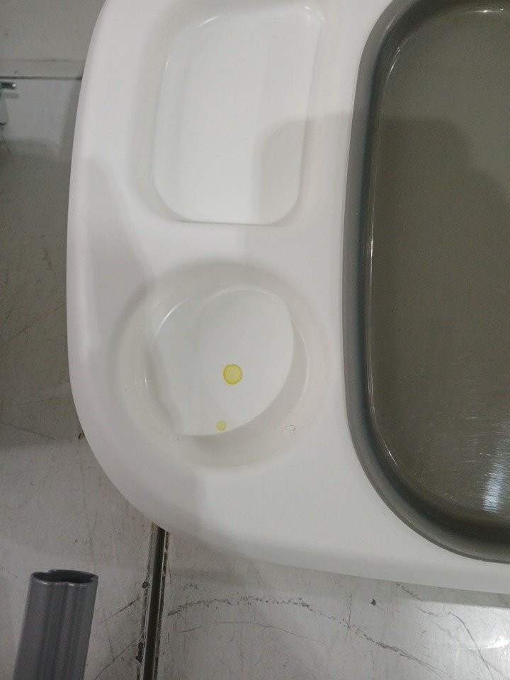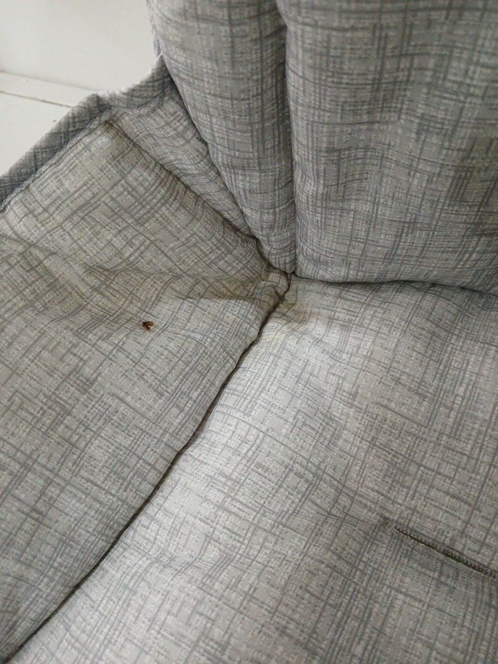 manufacter date: 2025, March , 05 Item appears to have been used, Small stains on fabric and small stain in cup holder, See images