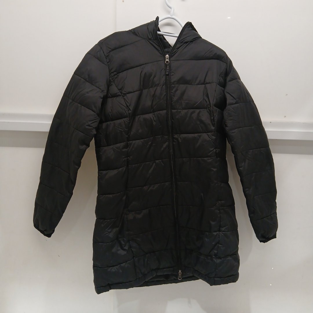 womens amazon essentials long light weight hooded puffer jacket - medium - black