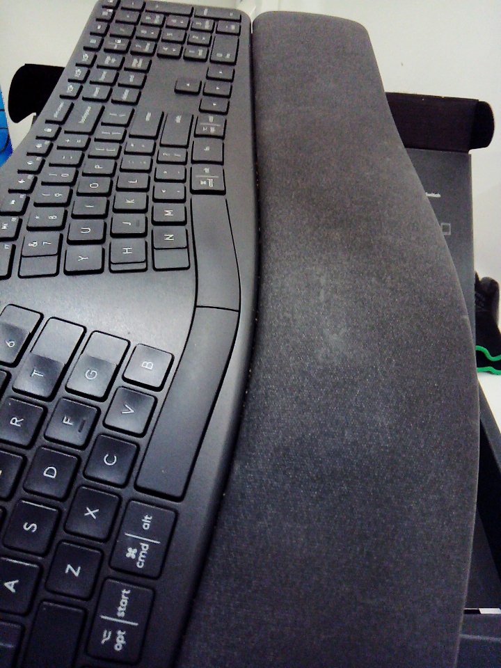 Ours is missing the USB receiver. There are faint markings on the wrist wrest and some dust/debris in the area where it attaches. Tested for power and inputs through Bluetooth connection. (SEE PHOTOS)