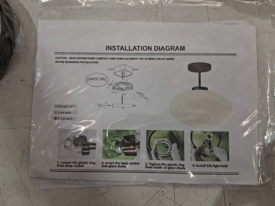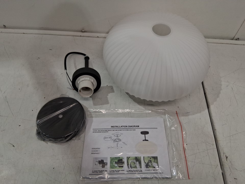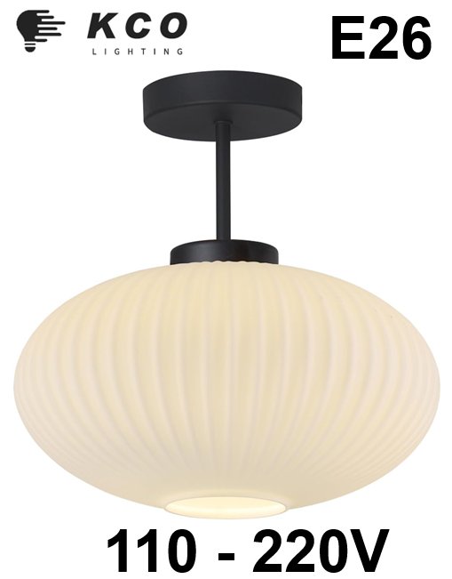 KCO lighting ribbed milk glass semi flush mount ceiling light - e26 -11.8" x 12.6" x 4.7" - 110-220v - matte black/milk white (MODEL: C1083-BW)