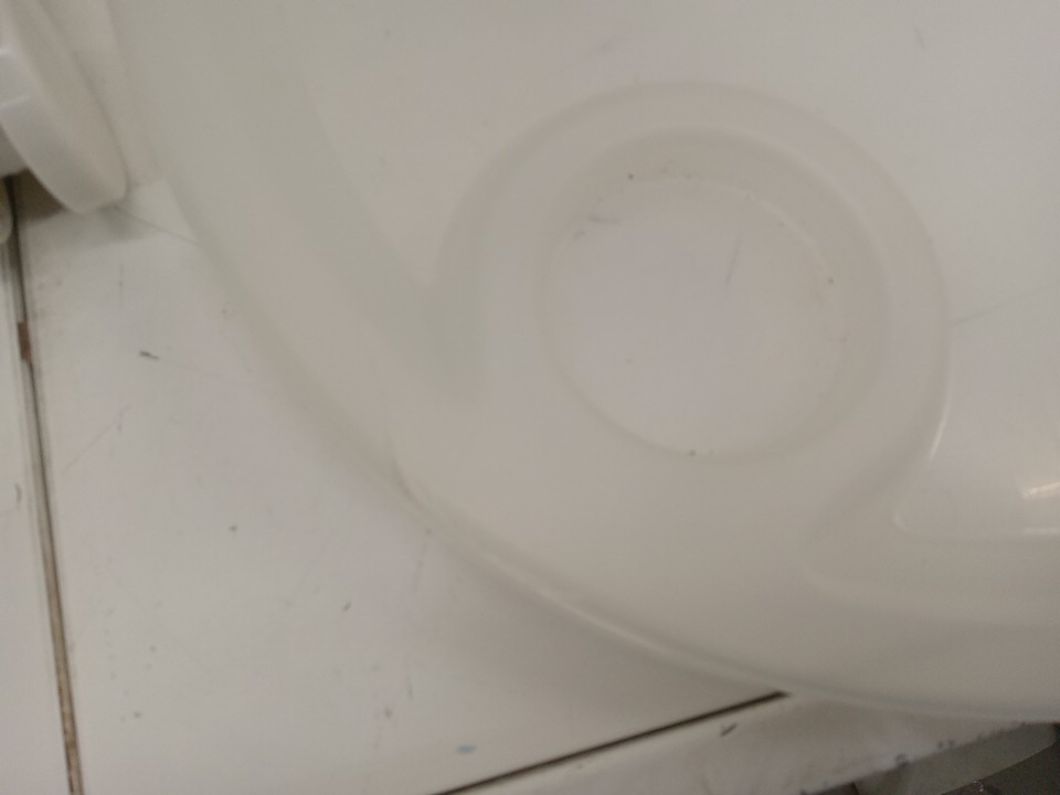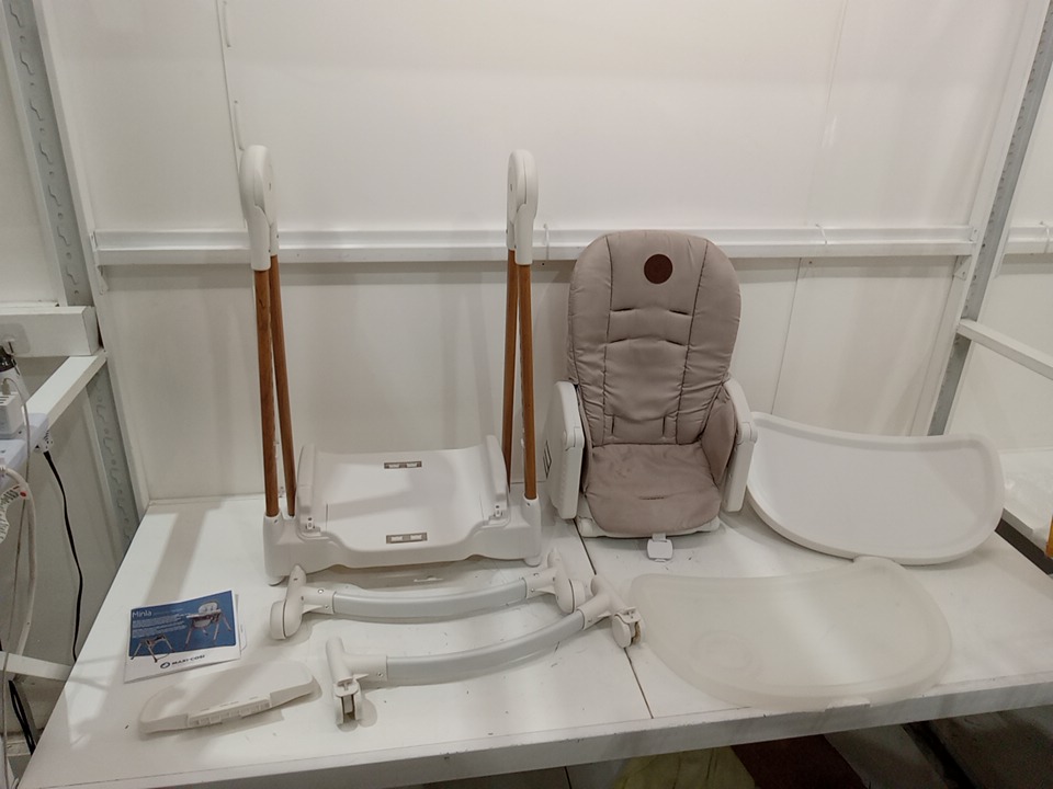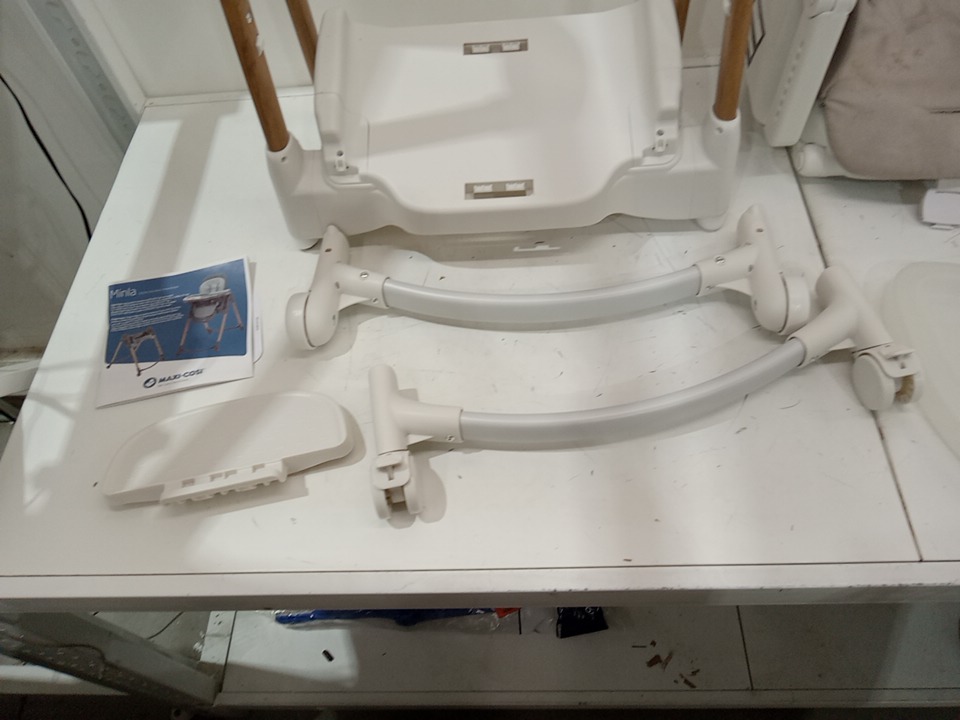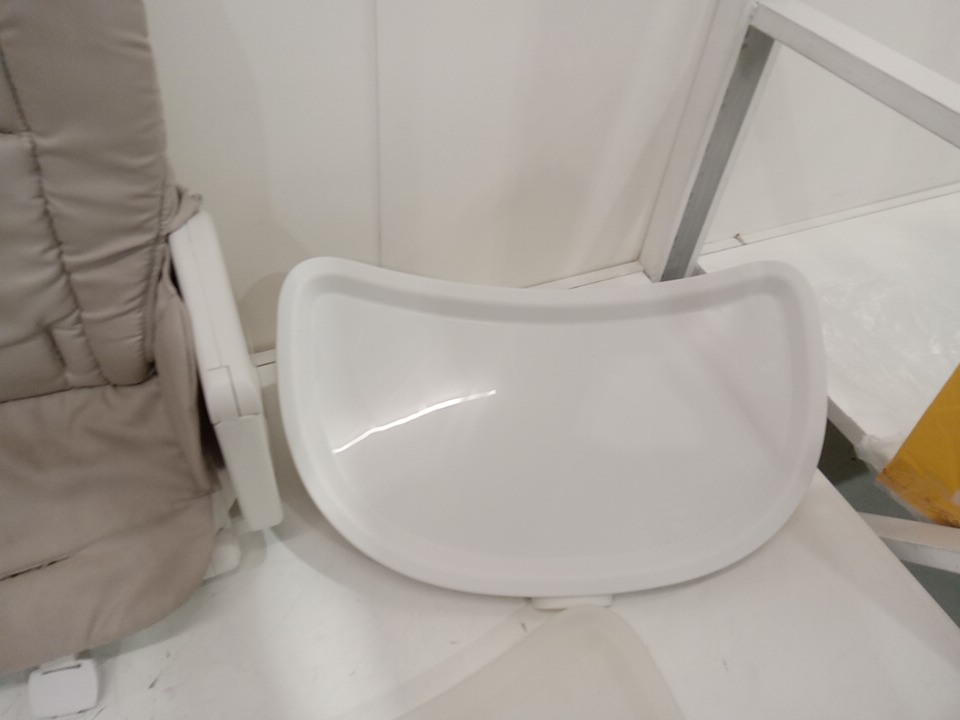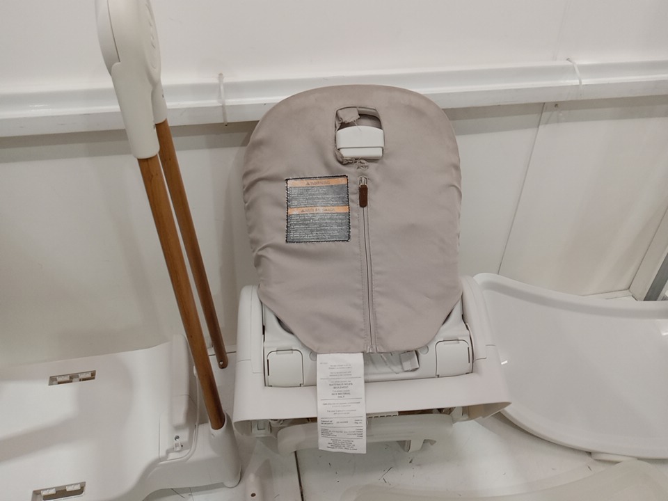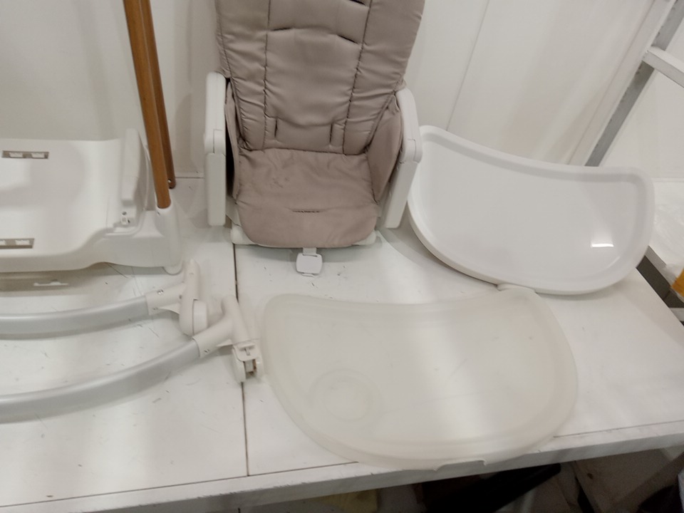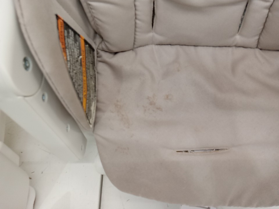there are some stain marks on the fabric seat cover and a pressure crack in the removable tray that attaches to the main tray please see photos