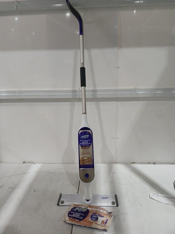 Swiffer PowerMop Multi-Surface Mop with batteries and mopping pads included for Floor Cleaning - purple/white (model: 1842580)