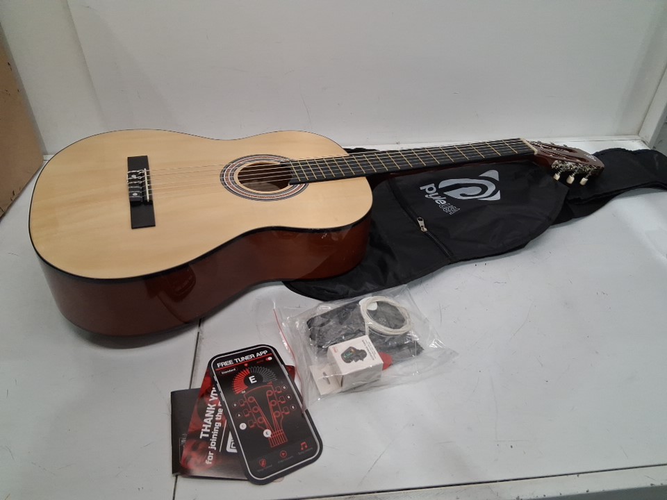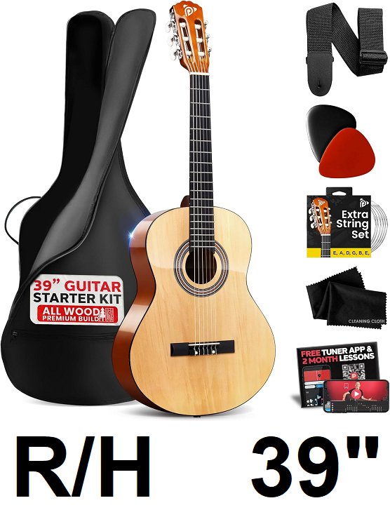 Pyle right HANDED 6-string classical acoustic guitar with accessory kit - 39" - Natural/wood grain (Model: pgacls90.x9)