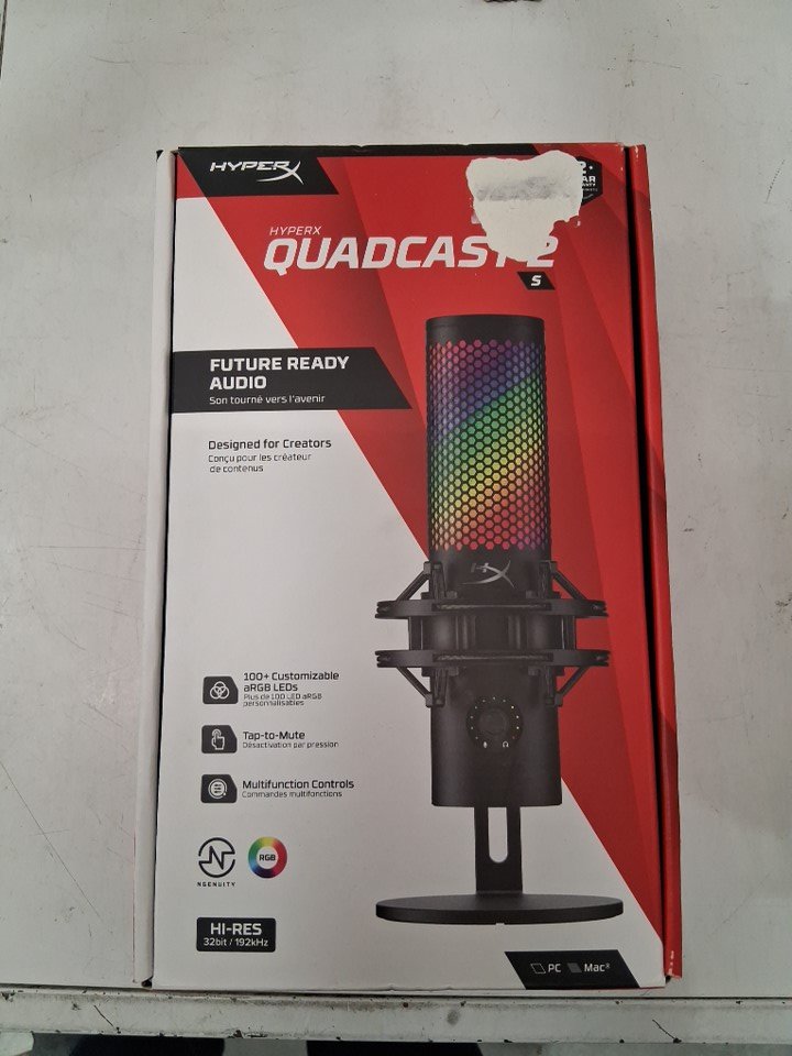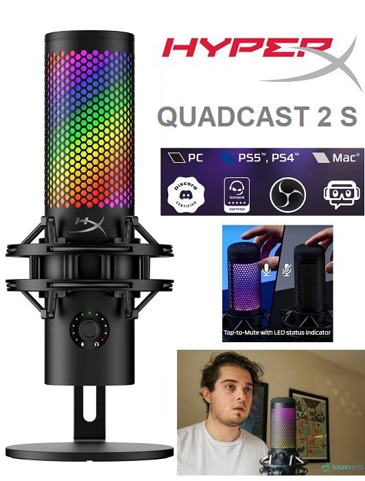 HYPERX QUADCAST 2 S - USB Microphone, with RGB Lighting, Streaming and Podcasting, with On-Board Controls, LED Lighting, Removable Shock Mount, PC, Mac, USB-C - black - (model: 9a273aa)