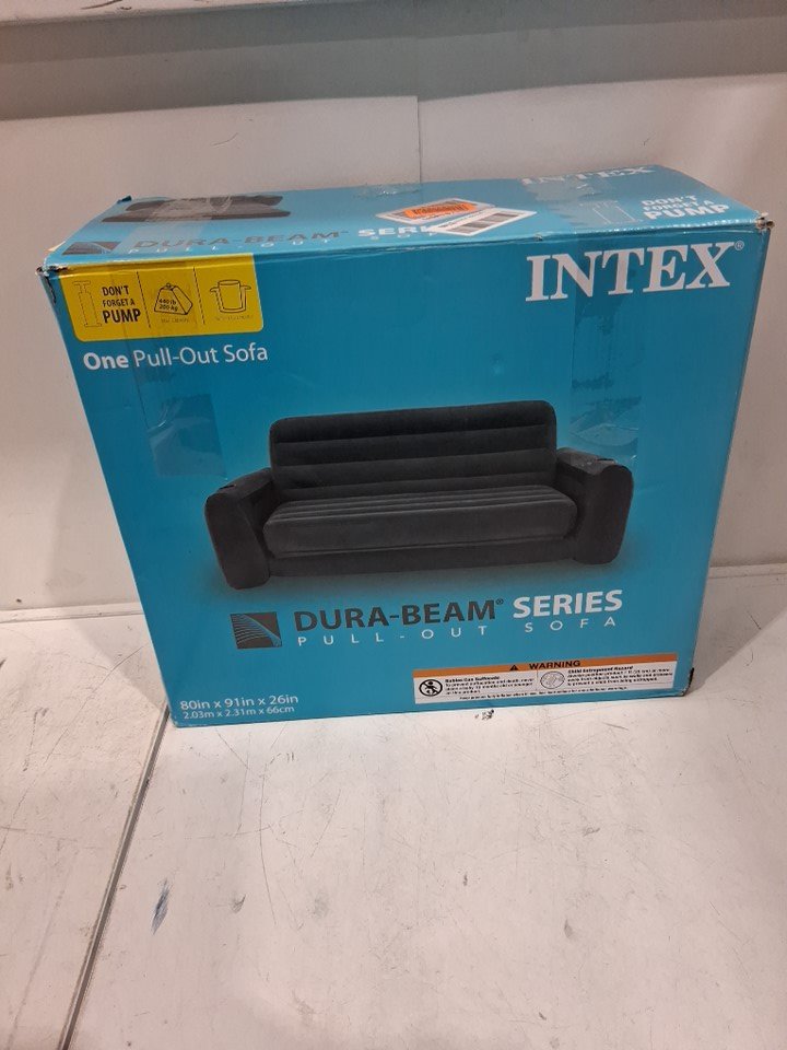 Intex dura-beam series Manual pump inflatable Pull-Out Sofa - 80" x 91" x 26" - 440lbs capacity - grey (Model: 66552EP)