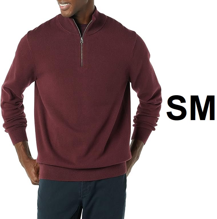 mens amazon essentials Cotton Quarter-Zip Sweater - small - burgundy