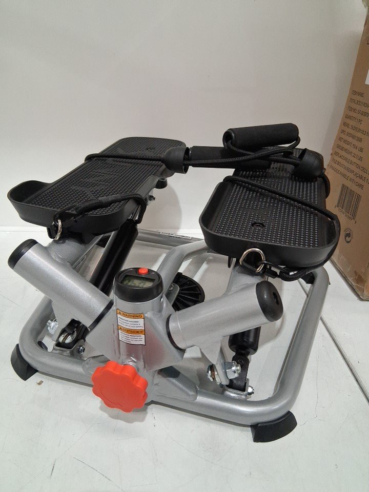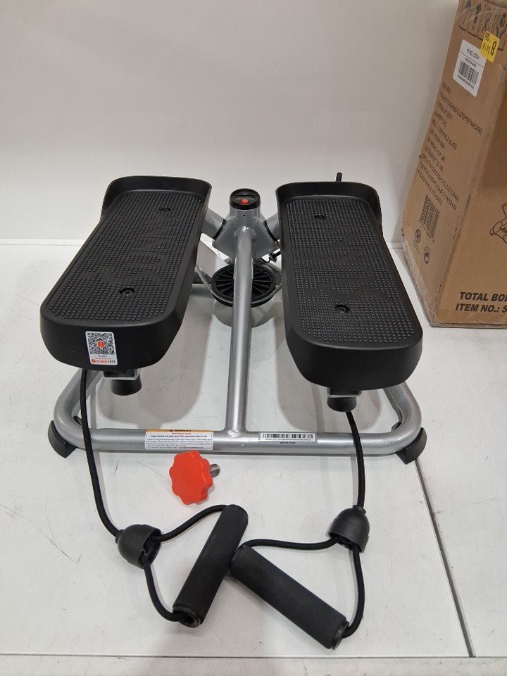 SUNNY HEALTH AND FITNESS TWIST STEPPER MACHINE WITH RESISTANCE BANDS AND DIGITAL MONITOR DISPLAY - GRAY/STEEL (MODEL: SF-S0979)