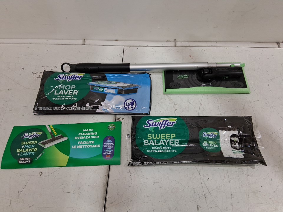 Swiffer 2-in-1 Sweep and Mop Deluxe Multi surface Mopping and Sweeping Kit with replacement pads (6 wet/ 5 dry) - green/black