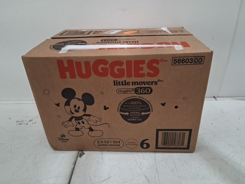 104PK HUGGIES LITTLE MOVERS disney baby DIAPERS - SIZE 6 (over 35lb)