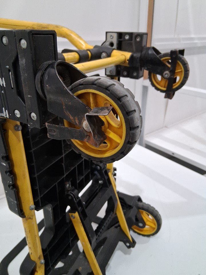 heavily used, multiple scratches and heavy dirt on entire item. Back right wheel is seized and back left wheel guard is broken (see photos).