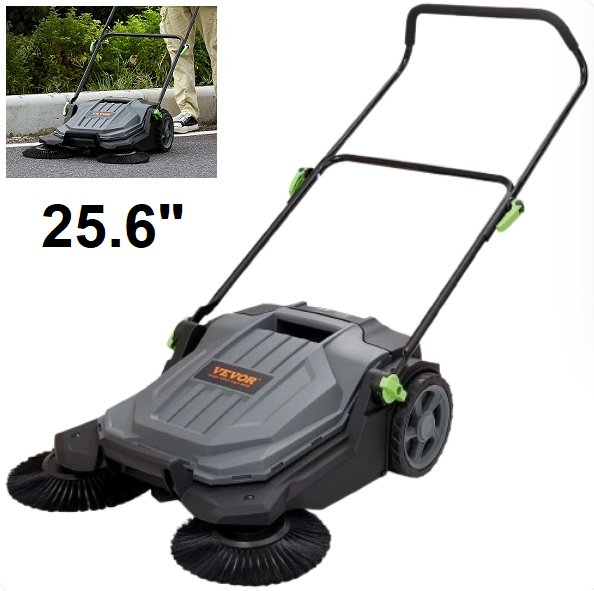 Walk-Behind manual Hand Push Floor Sweeper - 25.6" Sweeping Width - grey/black (model: S13-001A)