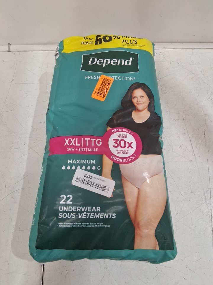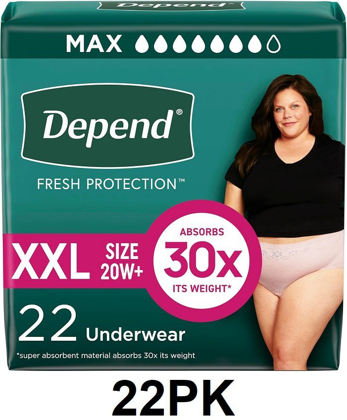 22PK WOMEN'S DEPENDS fit-flex Incontinence Underwear - Maximum Absorbency - XXL/20w+ - blush/pink (model: 10036000533061)