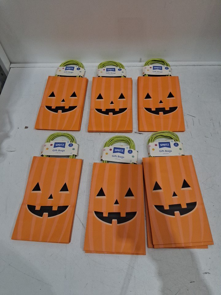 6 (4PK) Spritz Small Jr Tote Halloween Jack O'Lantern Gift Bag - 8" X 5" - ORANGE