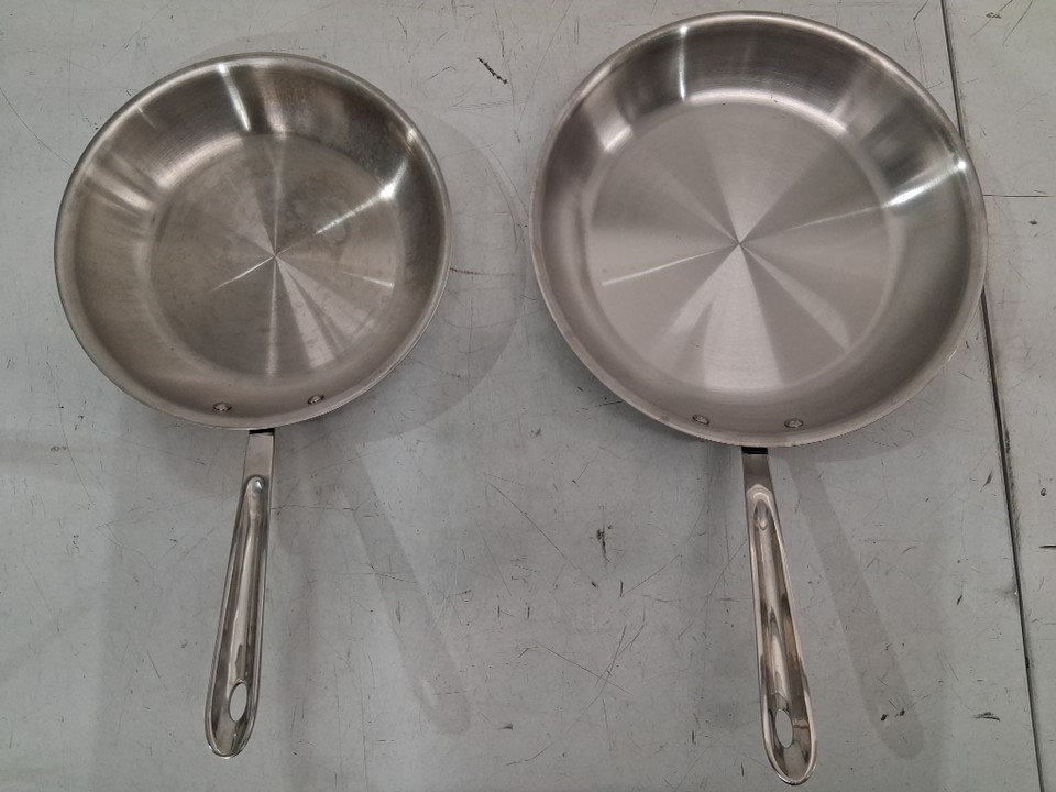 Both pans show traces of heat and food residue indicating prior short-term use. (See photos)