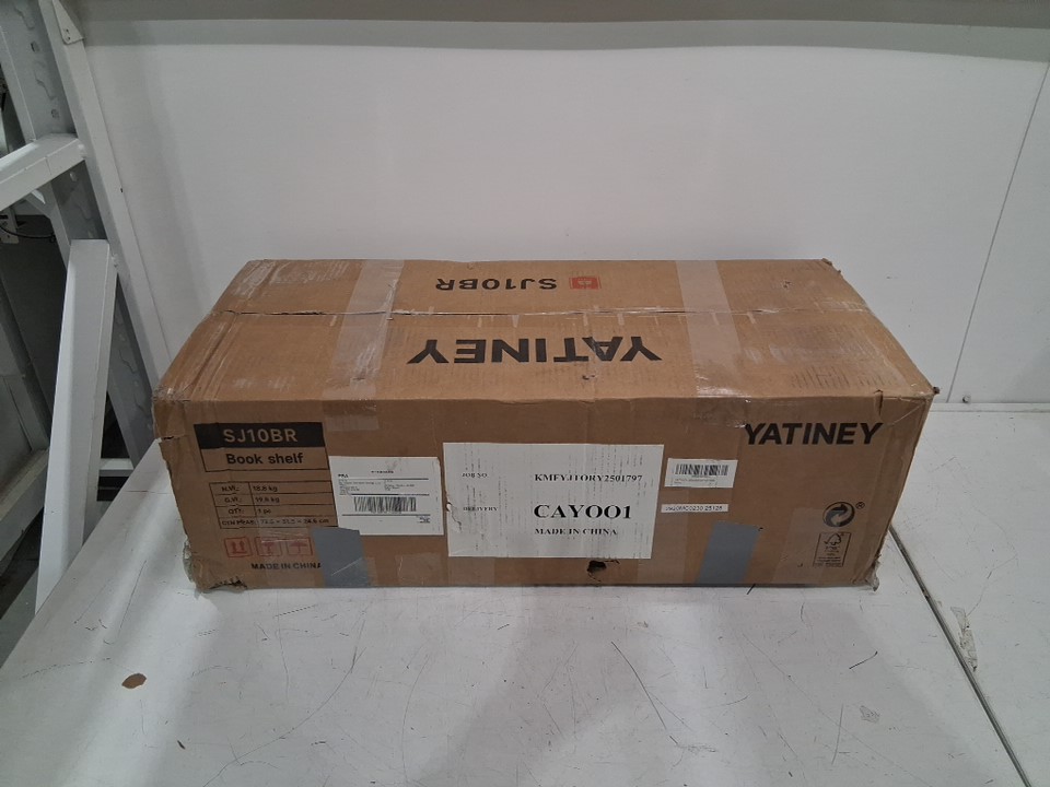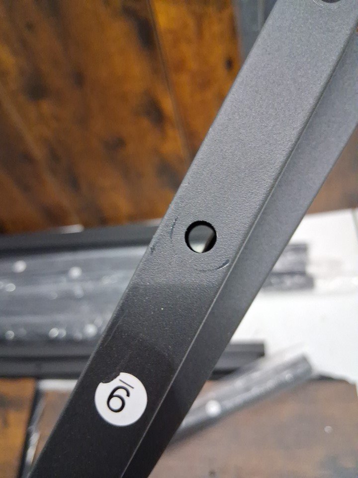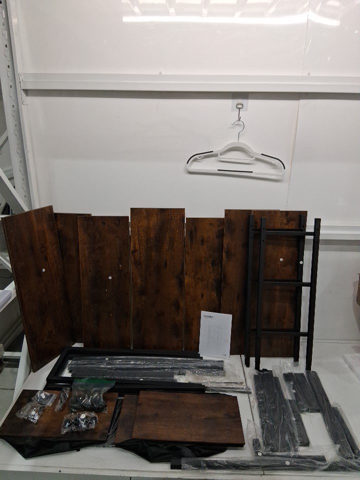 It looks like someone attempted to start building the shelf and ended up returning it before it was set up. There are 2-3 poles with washer marks near the screw holes due to the previous owner trying to assemble the shelf, and there is one scratch/crack beginning to form on one of the wood drawers. The majority of the pieces look new. (Please see photos)