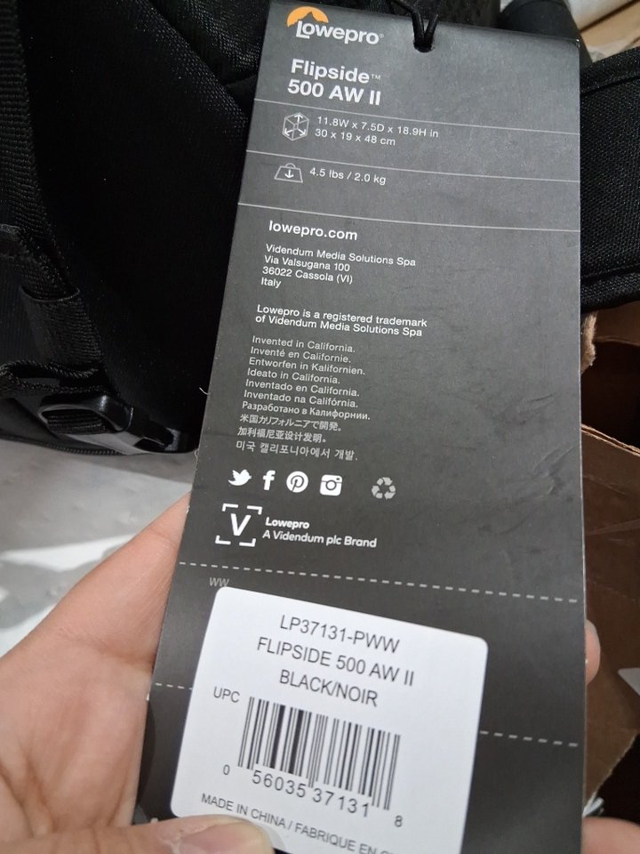 lowepro Flipside 500 AW II high-capacity camera backpack - 18.9'' x 11.8'' x 7.5'' - black/grey - (model: LP37131-PWW)