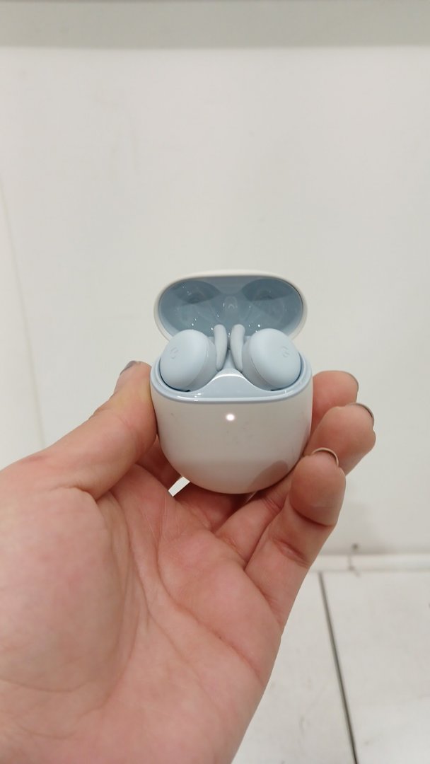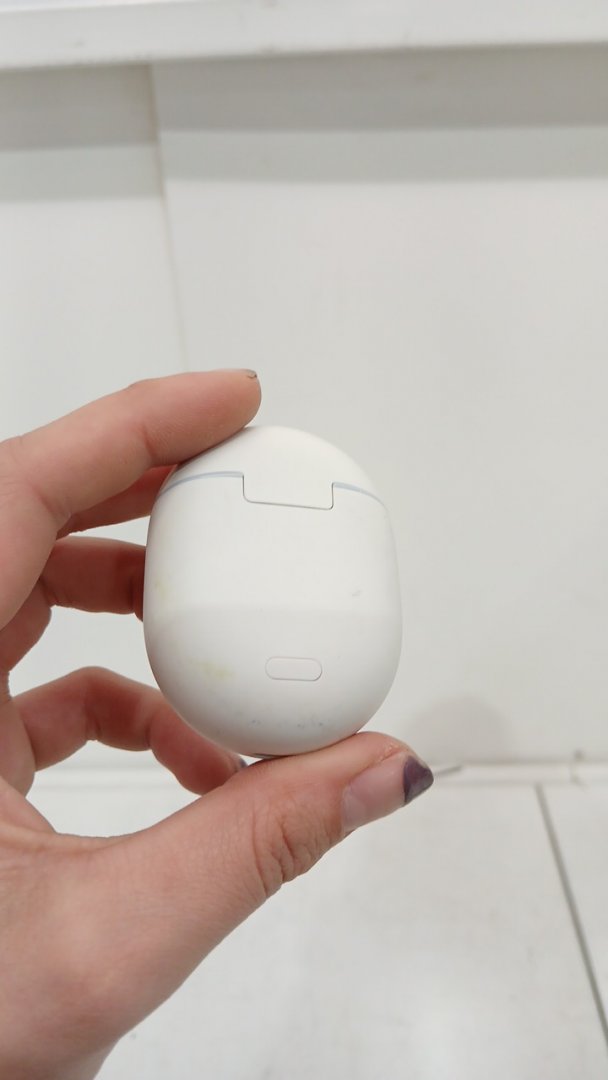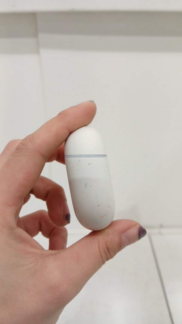 there is some minor residue on the rubber ear pieces however the rubber can be replaced as well as significant markings on the charging case from previous use
