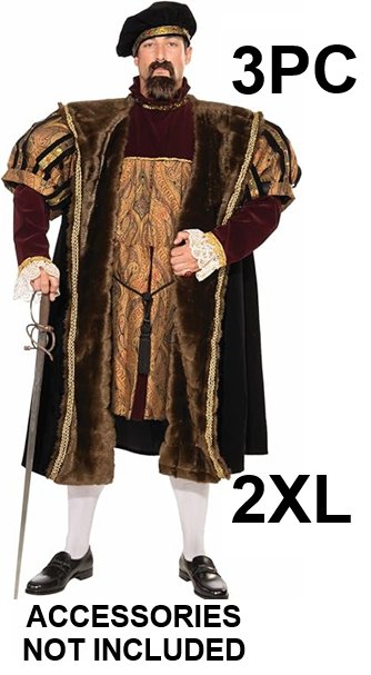 3pc mens rubies deluxe designer costume WITH HAT, TUNIC & COAT - king henry the vii - 2xl - (style: f70877)