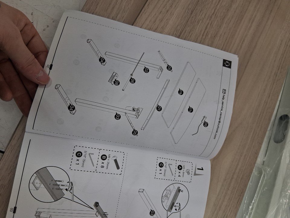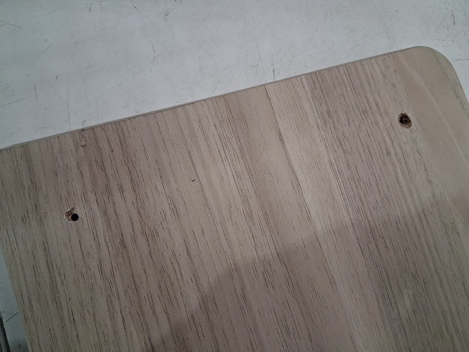 some of the hardware was lose when inspecting, where the screw go for the desk there is a little bit of damage, see photos.