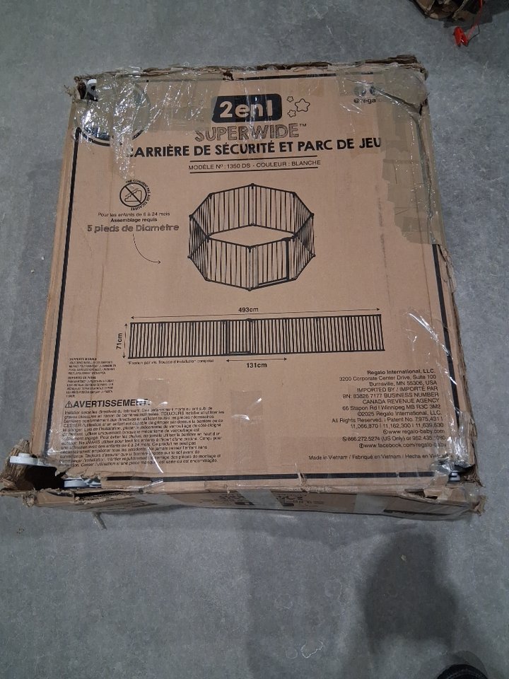 REGALO 2-IN-1 8-PANEL SUPER WIDE METAL SAFETY GATE/PLAY YARD - FITS OPENINGS UP TO 194" - 28" HIGH - WHITE - (MODEL: 1350DS)