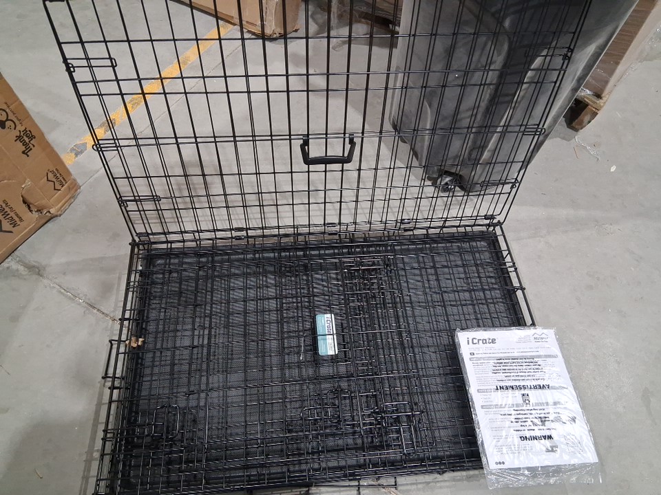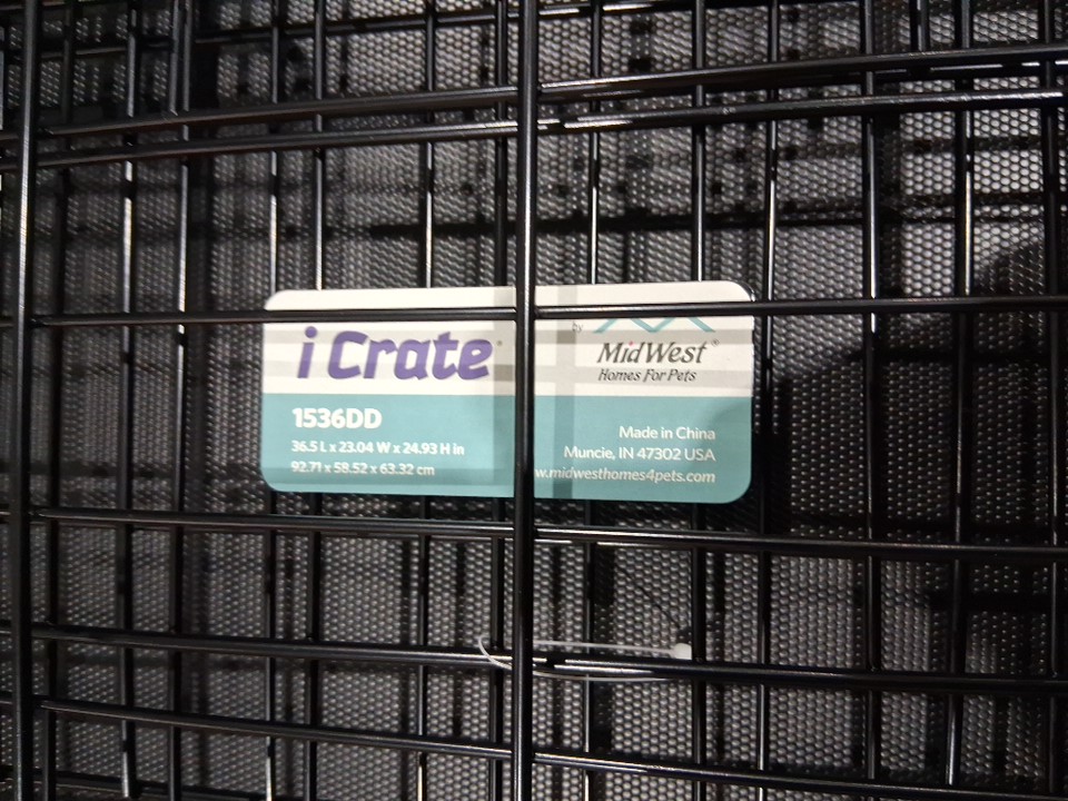 Midwest iCrate Double Door Folding Metal Dog Crate with Divider Panel, Floor Protecting Feet, and Leak-proof Dog Tray - 36" X 23" X 25" - Black (Model:1536DDU)