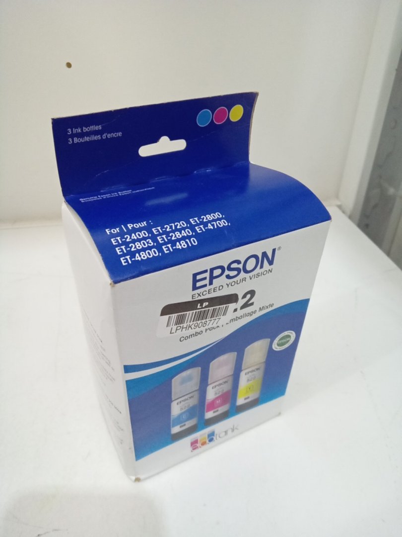 3PC Epson 522 Combo Pack Ink Refill Bottles for Select EcoTank Printers - 65mL Each - Cyan, Magenta, Yellow (Model: T522520-S/CP)