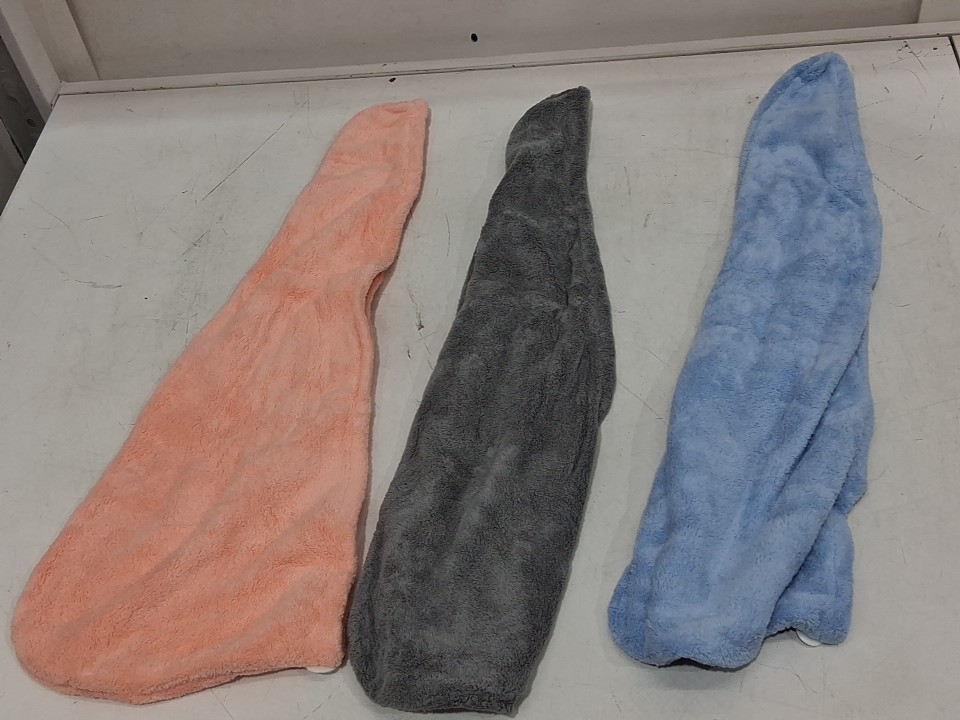 3PK BEOFFER MICROFIBER HAIR TOWEL WRAPS - FAST HAIR DRYING - PINK/BLUE/GREY