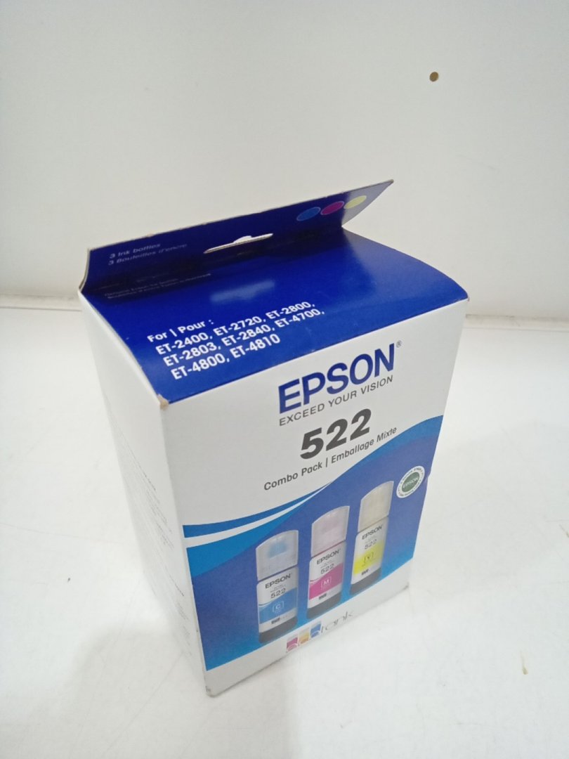 3PC Epson 522 Combo Pack Ink Refill Bottles for Select EcoTank Printers - 65mL Each - Cyan, Magenta, Yellow (Model: T522520-S/CP)
