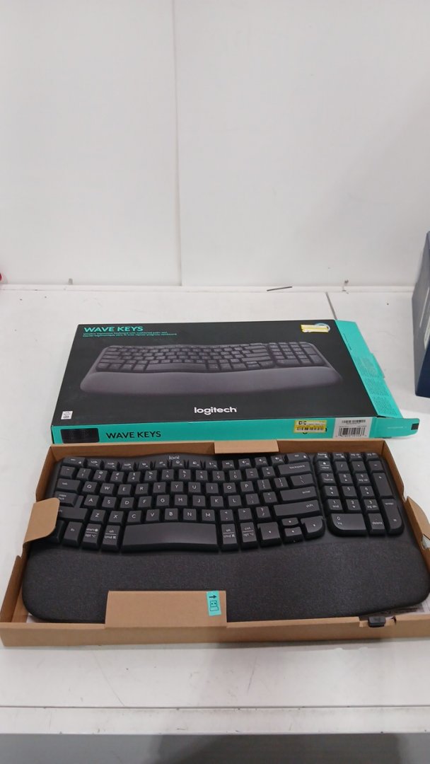 logitech wave keys wireless bluetooth ergonomic keyboard - black/grey (model: ‎yr0096)