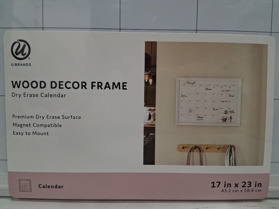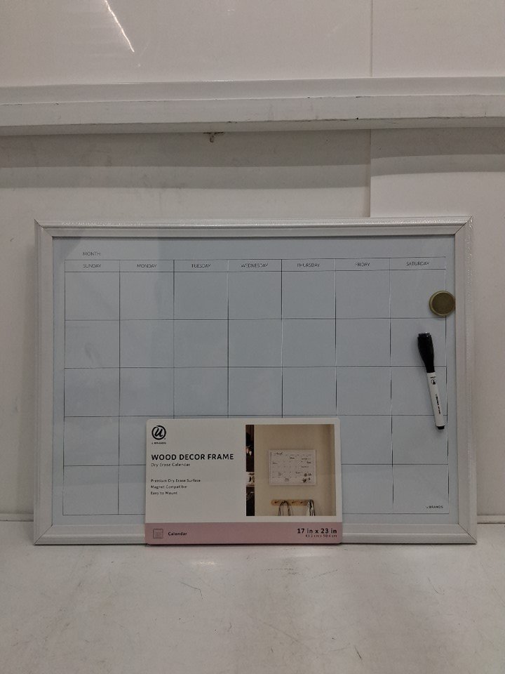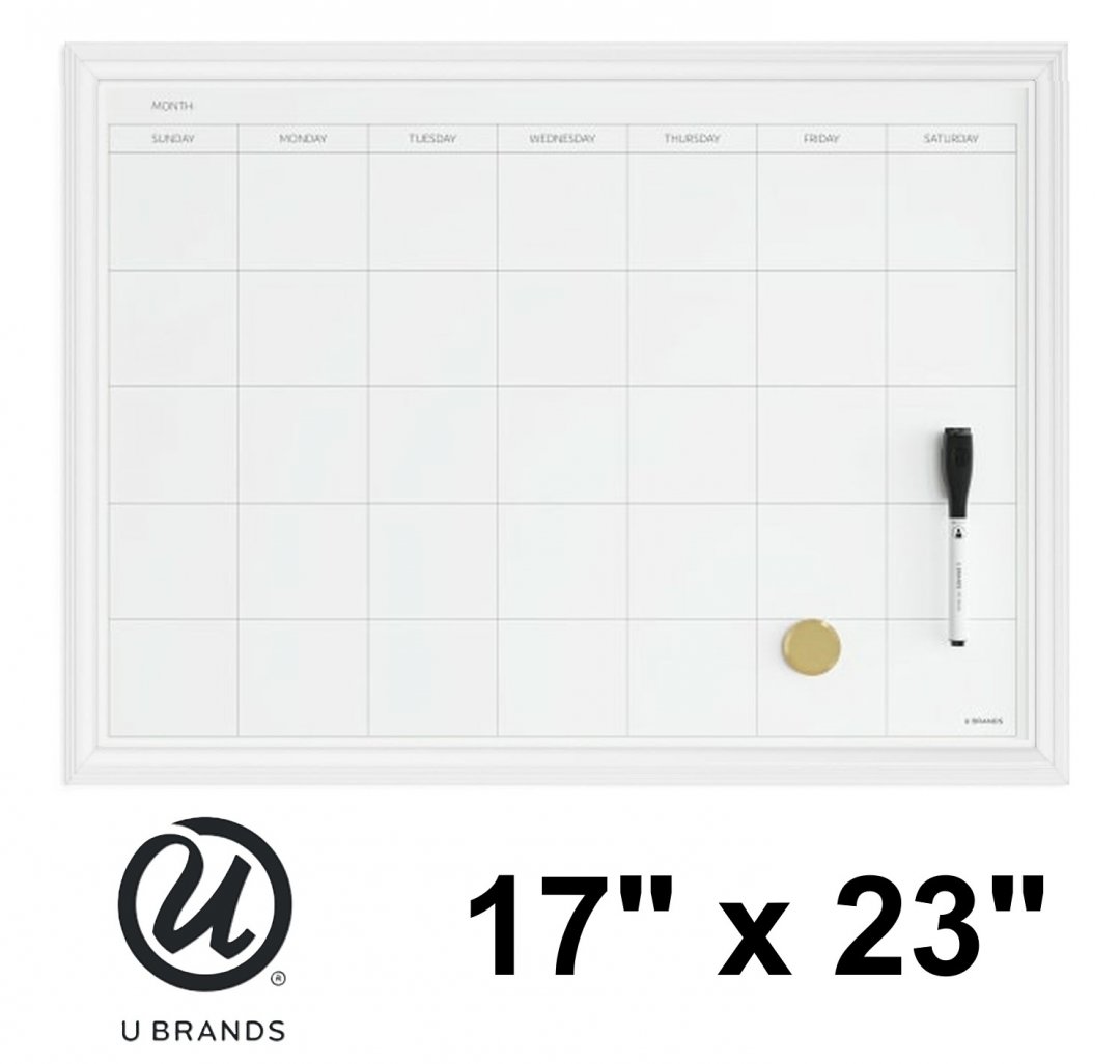 U Brands Wood-Framed Magnetic Dry Erase Calendar - 17" x 23" - White (Model: 6731T)