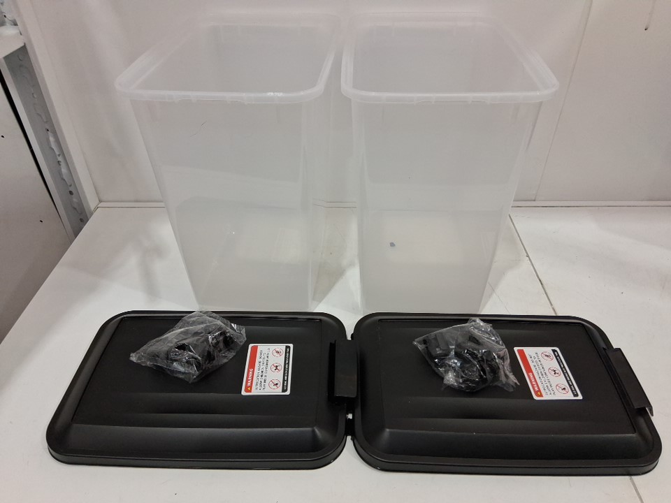 Item shows signs of light use. Pet food/pet hair residue present inside containers, and there is also a residual pet food smell (see photos).
