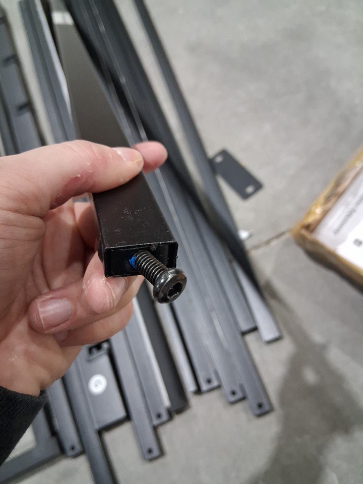 Two of the screw are stuck in the posts for bed, and all the other hardware for the bed frame is missing, see photos.