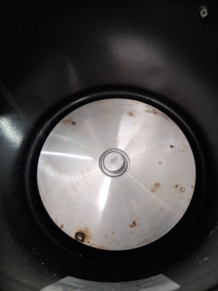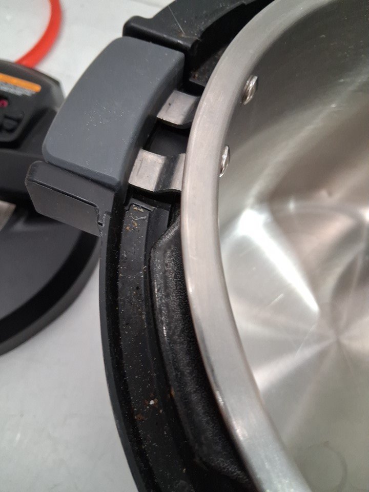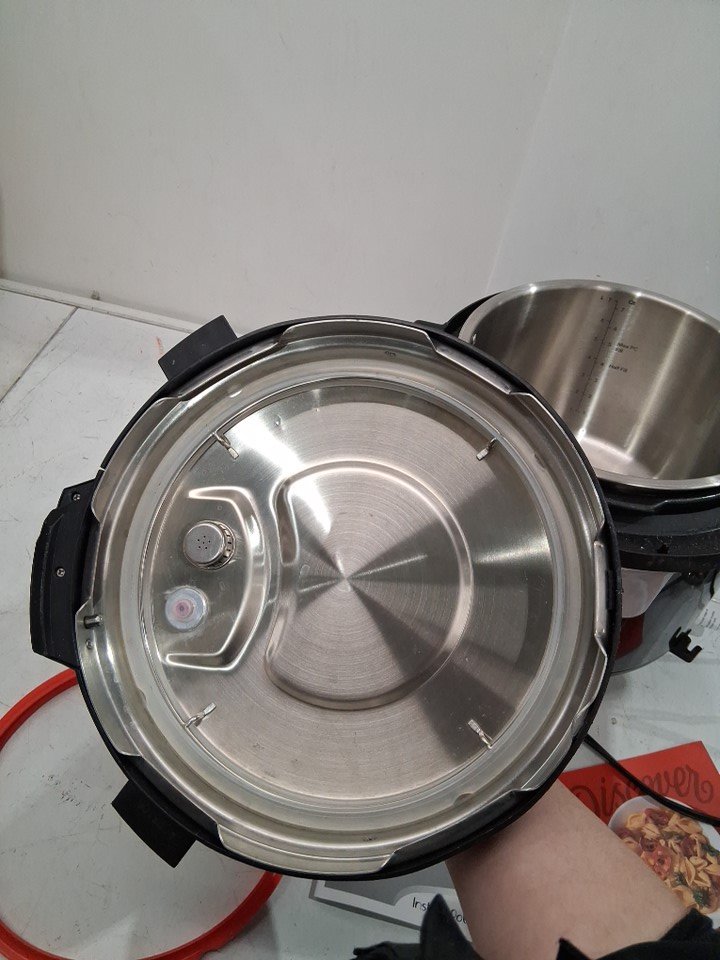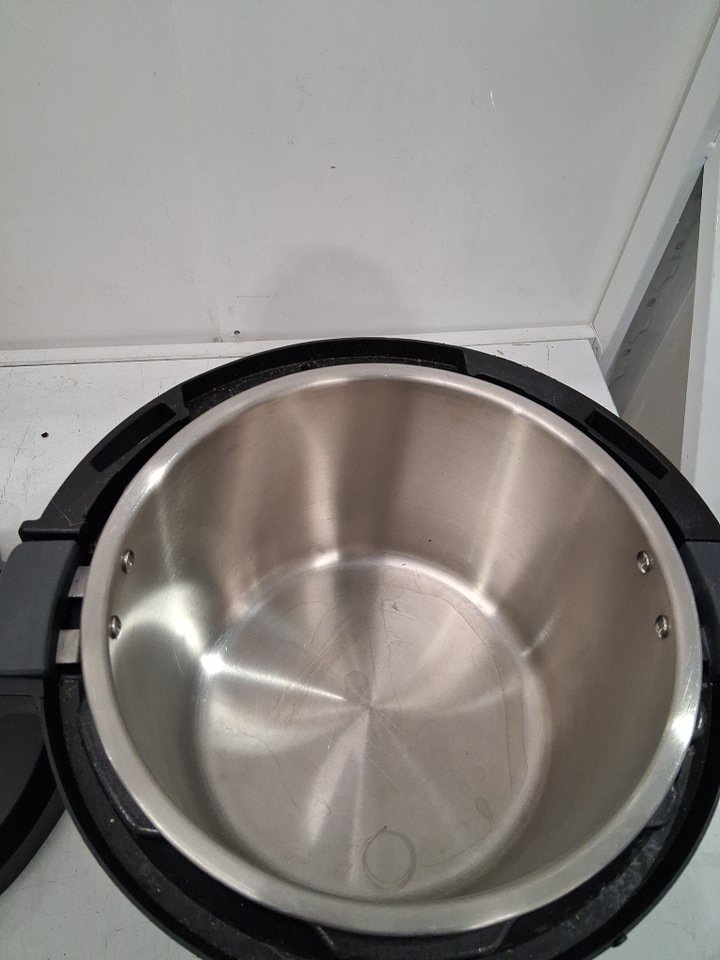 Product is missing steam cap and wire rack and has water marks and residue throughout (See photos)