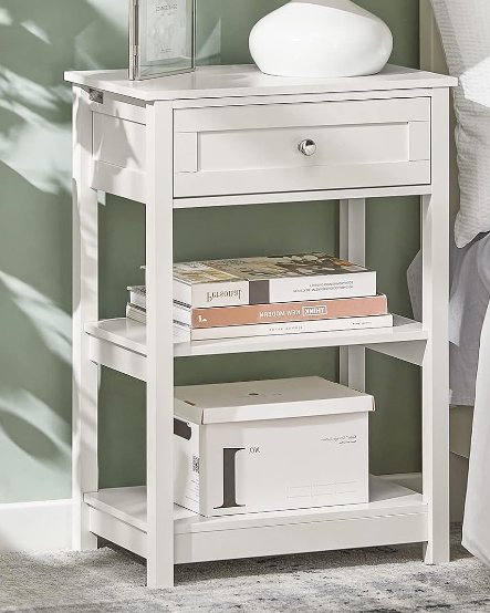 SoBuy Nightstand with 1 Drawer and 2 Open Shelves - white - (model: fbt46-w)