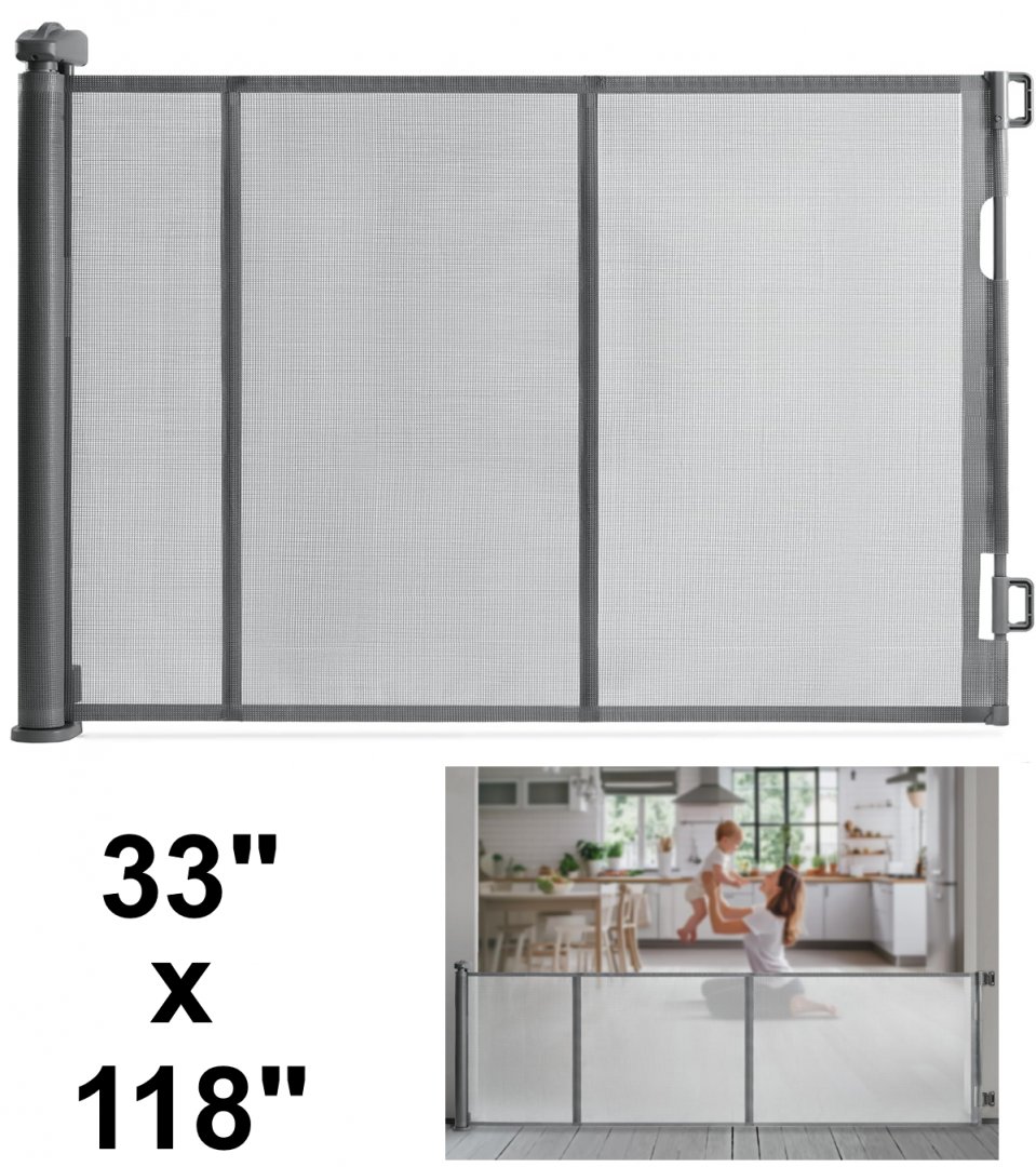 idea casa Retractable Mesh Baby Safety Gate - 33" X 118" - light grey