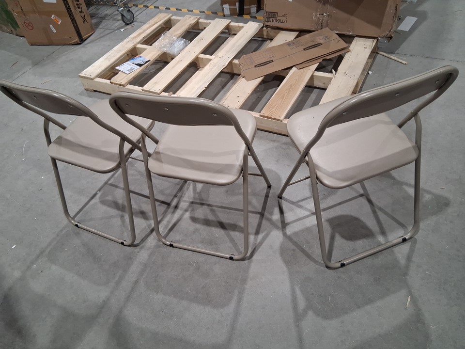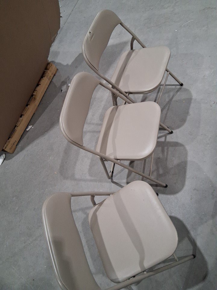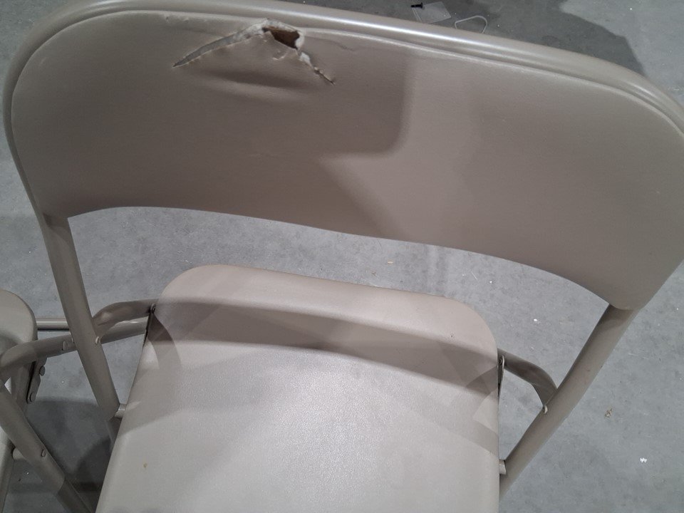 A CUT PRESENT ON THE BACKREST OF ONE OF THE CHAIRS, SOME DIRT PRESENT ON THEM INDICATES PRIOR USE.