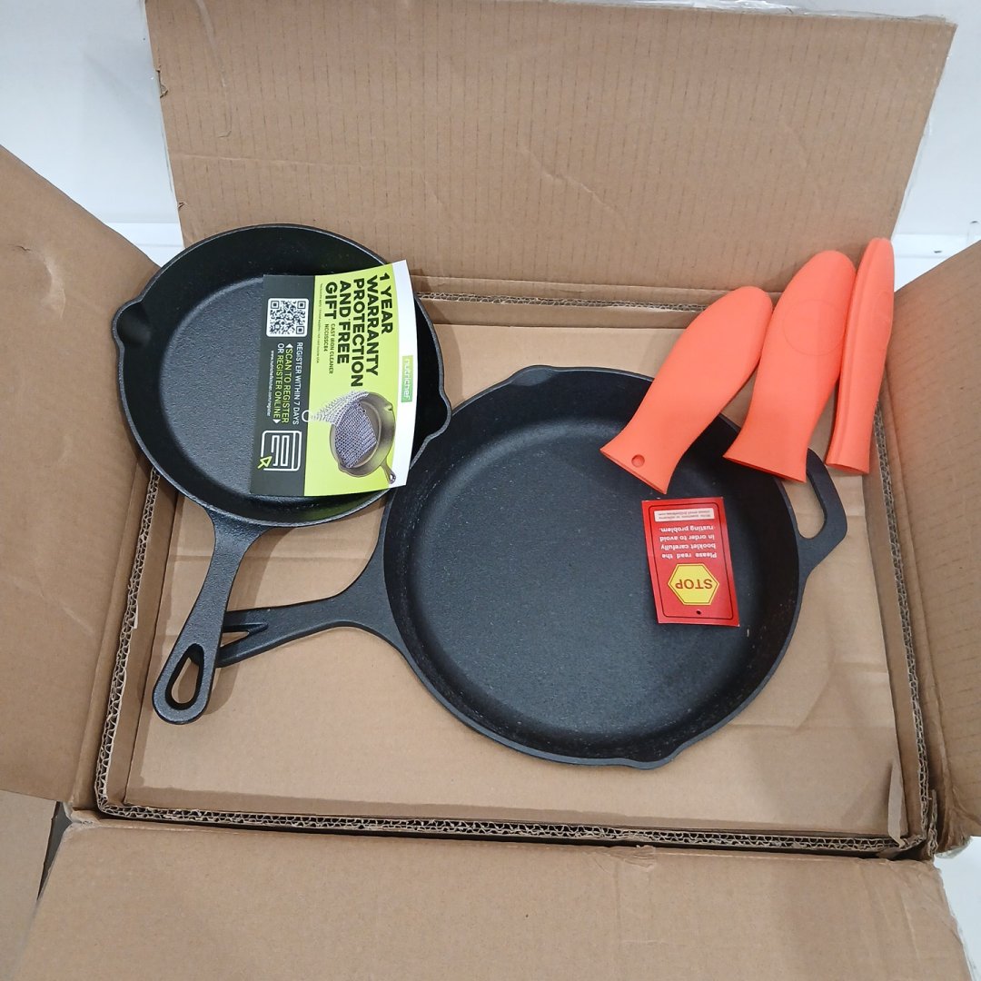 3PC NUTRICHEF Cast Iron Skillet Set - Nonstick Pans with Drip Spout & Silicone Handles - 8" , 10" , 12" - BLACK (MODEL: NCCIPS3P49)