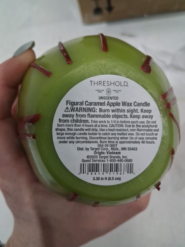 4PK THRESHOLD FIGURAL CARAMEL APPLE CANDLE - GREEN/RED