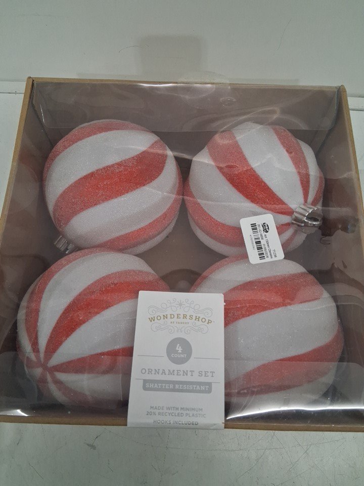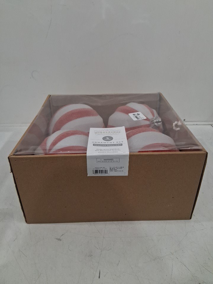 4PK wondershop shatter resistant ornament set with hooks - CANDY CANE STRIPE