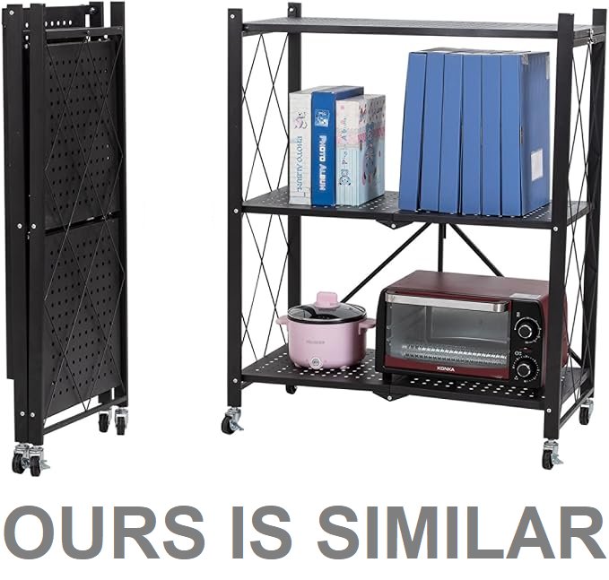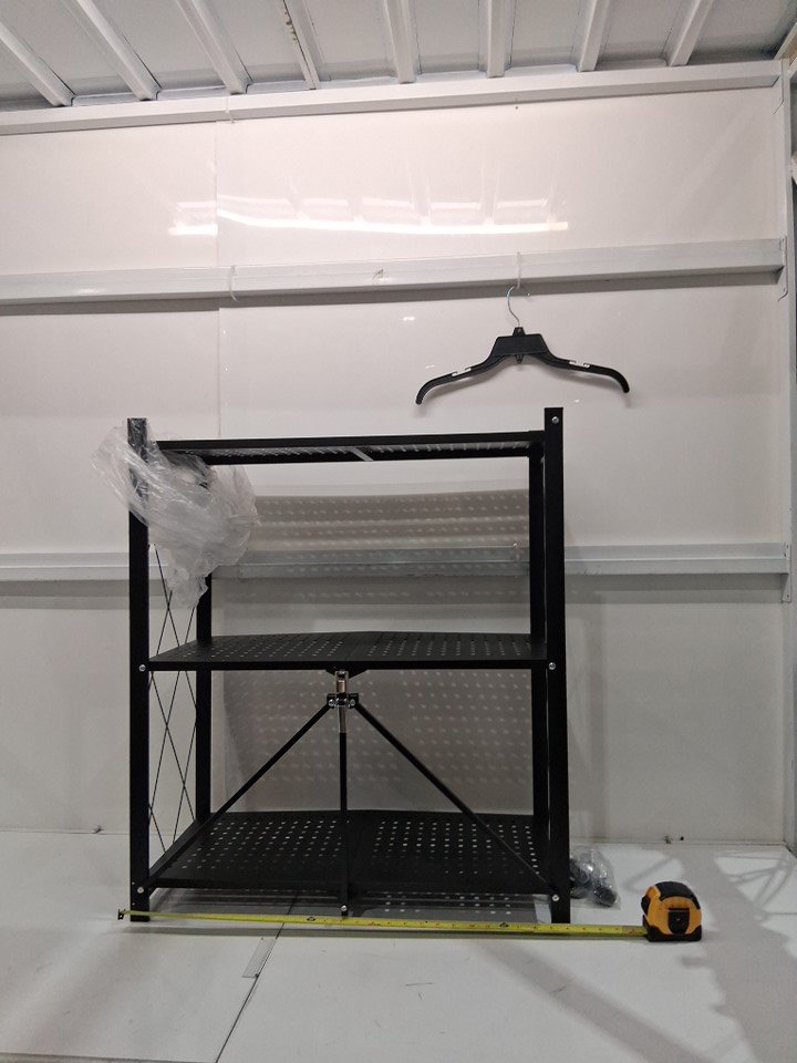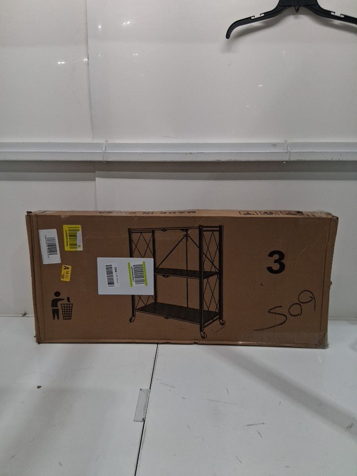 3 tier foldable storage cart with wheels and handles - 27.95" x 13.4" x 33.9" - black