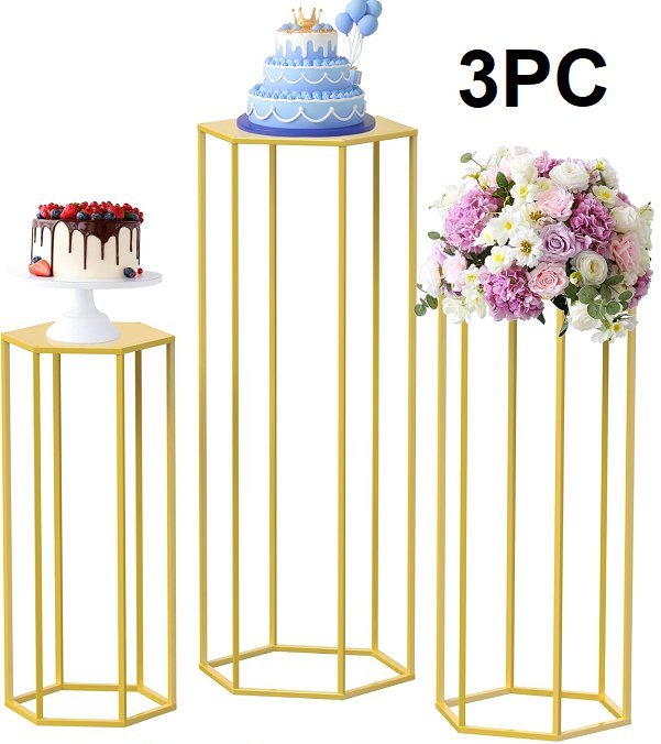 3pc hexagon pedestal plant/decoration stand - 23.6" - 27.6" - 35.4" - gold
