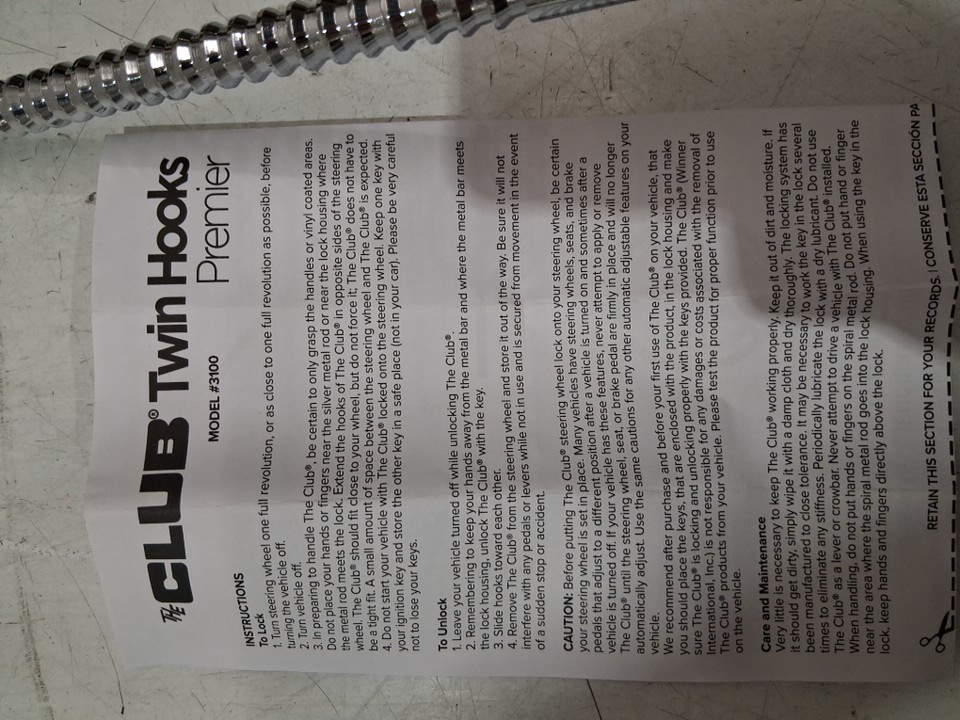 WINNER THE CLUB TWIN HOOKS KEYED STEERING WHEEL ANTI-THEFT LOCK - BLACK/GOLD (MODEL: 3100)
