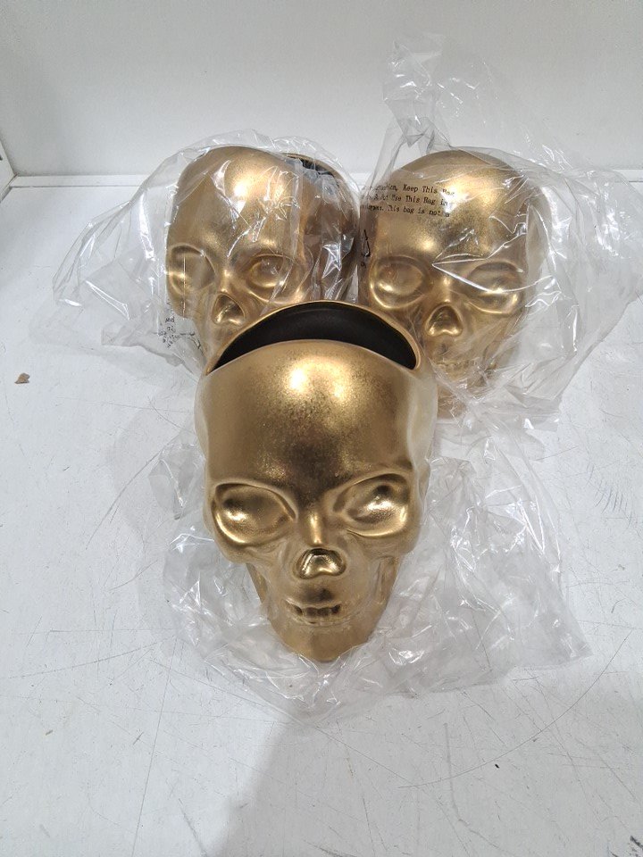 3 threshold Stoneware Skull Candy Bowl - gold