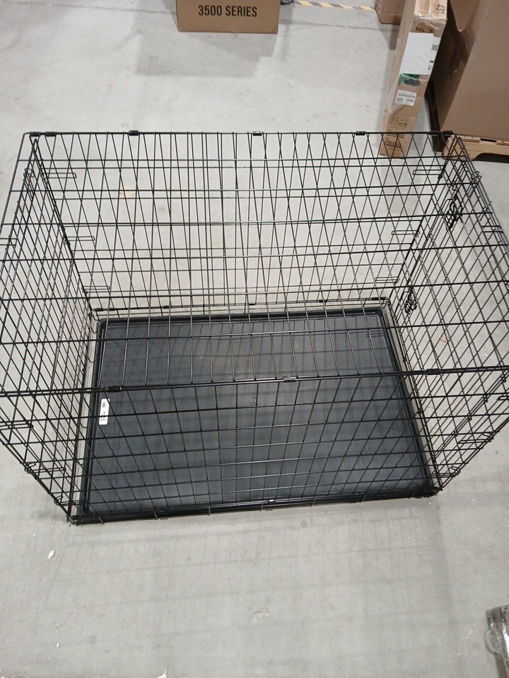 NEW WORLD FOLDING METAL DOG CRATE - INCLUDES LEAK-PROOF PLASTIC TRAY - FITS LARGE DOG BREEDS - 42"L X 30"W X 28"H - BLACK (MODEL: B42)
